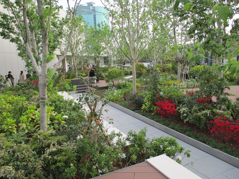屋上はそんなに混んでなかったし、あまり凝った庭園にはなっていない。