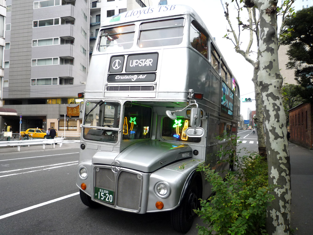 乃木大将の家の前に変な2階建てバスを発見。