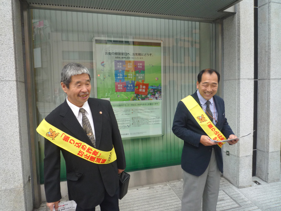 近所の銀行で用を足して出てきたら入れ違いに、幟を立てた一団とすれ違う、カメラをクルマに取りに行っている間に一団は銀行...
