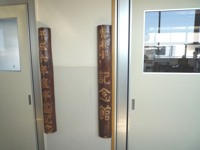 青木小は屋上緑化の先駆けで田んぼまである。稲の苗は...