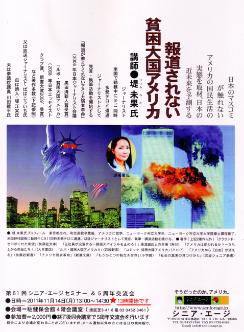 先日、「報道されない貧困大国アメリカ」というセミナーをこのサイトの兄貴分「シニアエージ」が開催した。