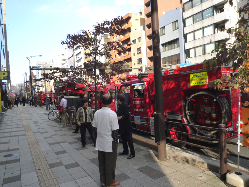 昼飯を食べていたら、ガラス戸越しに、サイレンの音と共に消防自動車がジャンジャンやって来る。はしご車も。