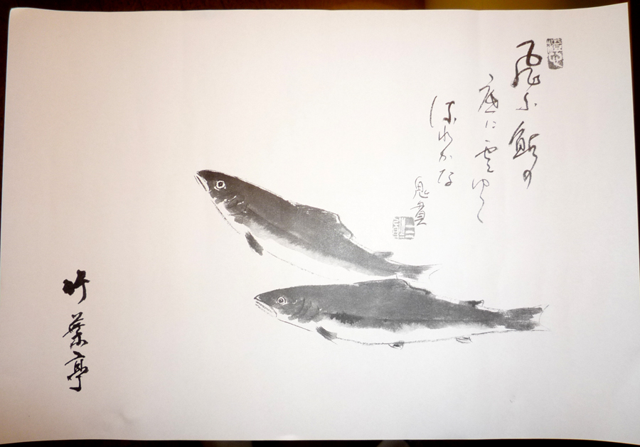 五月初旬は兜の絵だったけれど、やや!久しぶりの鮎の絵だ! この絵の時は、幕の内に必ず鮎の甘露煮が入っているのだけれど...