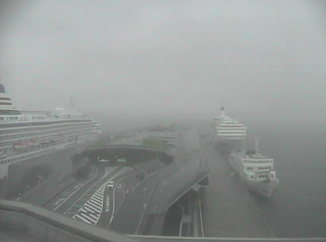 9日、9時40分現在、にっぽん丸入港済み。飛鳥接岸中。