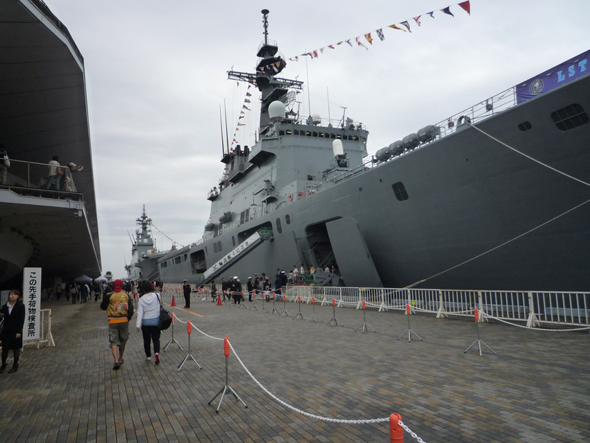 輸送艦「くにさき」(8,900t)と護衛艦「ひゅうが」(13,500t)。