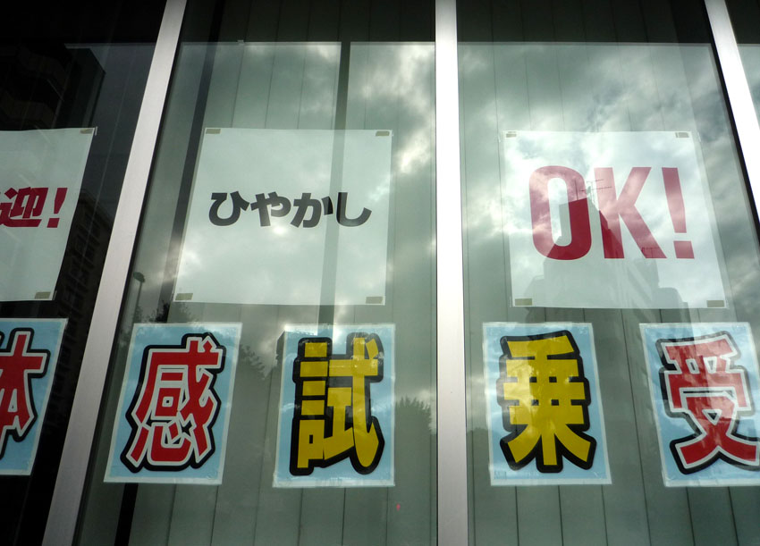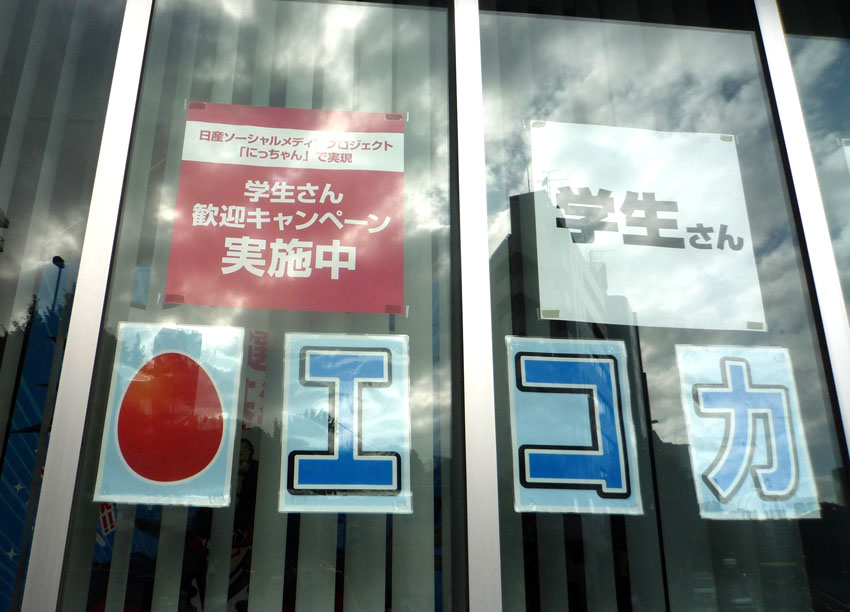 近所の日産自動車販売店の前を通ったら大きな張り紙!