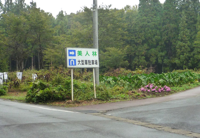 森の学校キョロロというテーマ館から、峠を越えようとしたら、なんと「美人林」の看板