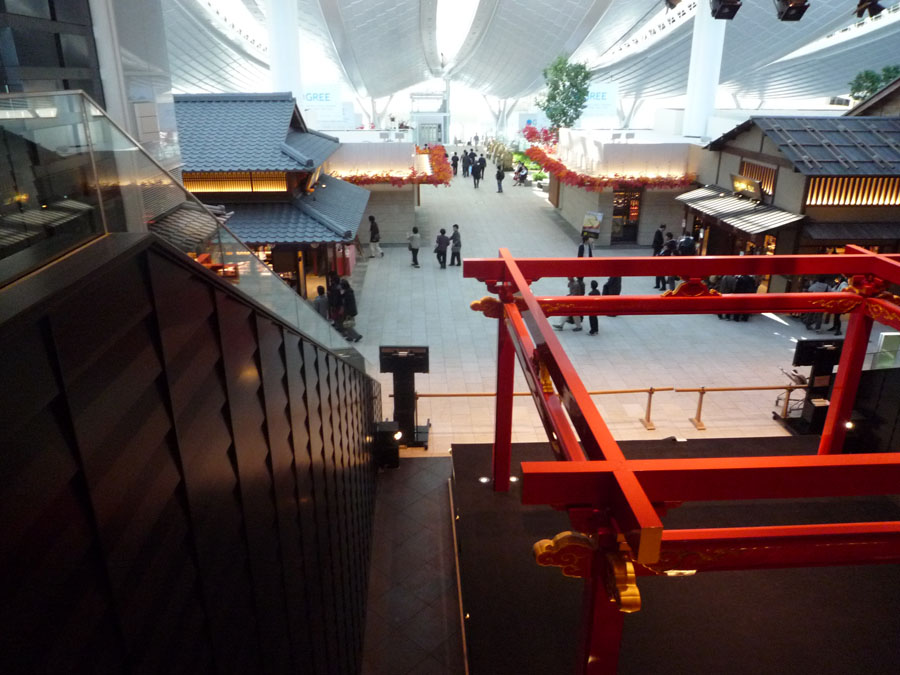 建築好きの友人と、国際線ターミナルの江戸小路と第二ターミナルのビ...