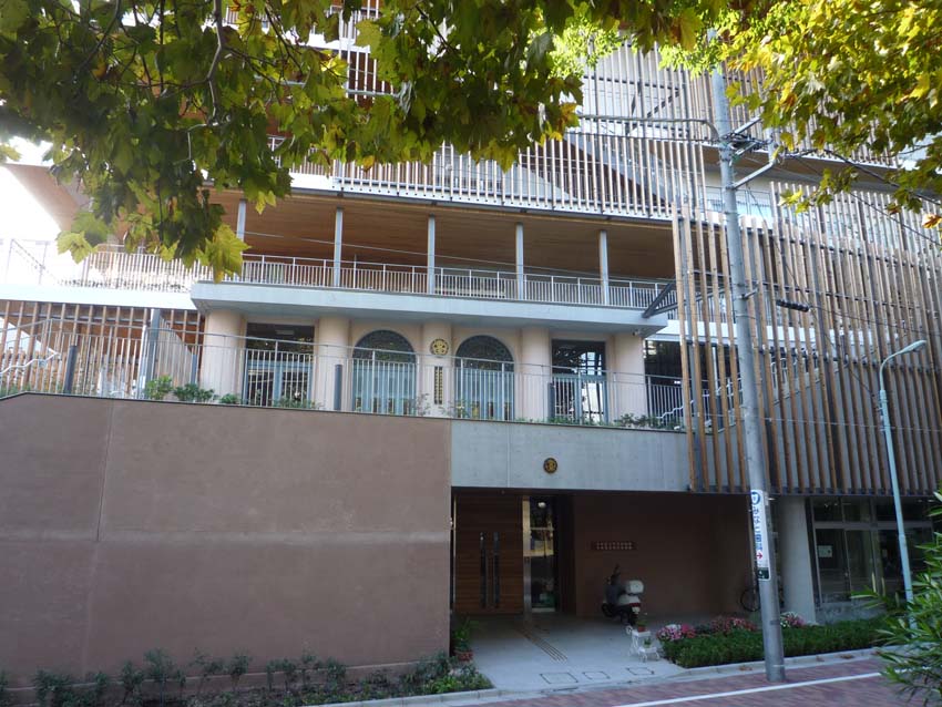 復興小学校変じて、木の温もりビルに
