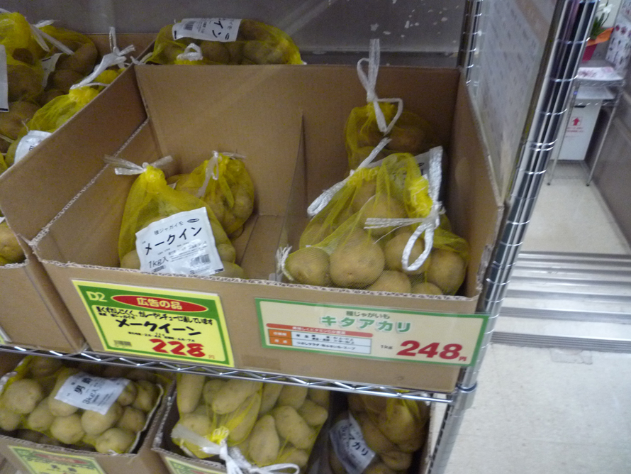 近所のハウスセンターに行って、エレベーターを下りた所に「種芋」が売っていた。