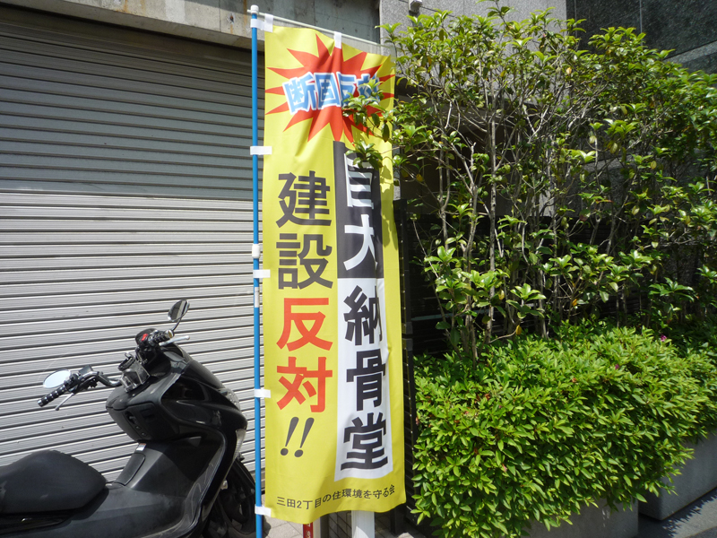 近所の路地脇の寺が3階建ての納骨堂を作る計画を立てたのは10年前。更地にして表示も出た。結構広い土地。ボーリングもしてい...