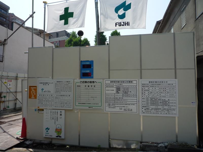 変な工事現場と反対のぼり。