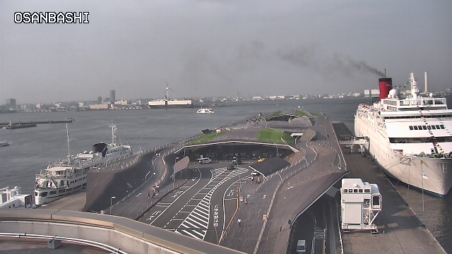 トップページの「ライブカメラ」(大桟橋の24時間映像)を見たら、見慣れない大きな船が。