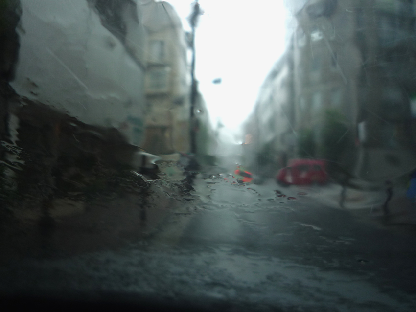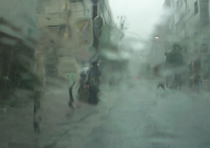 韓国大使館近くの横道にあるスーパーに買い物へ、突然のゲリラ豪雨。