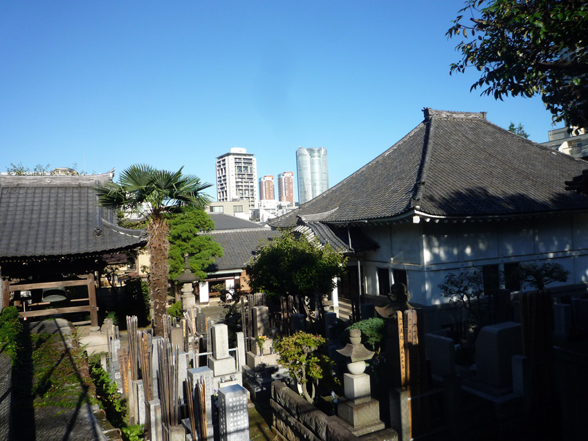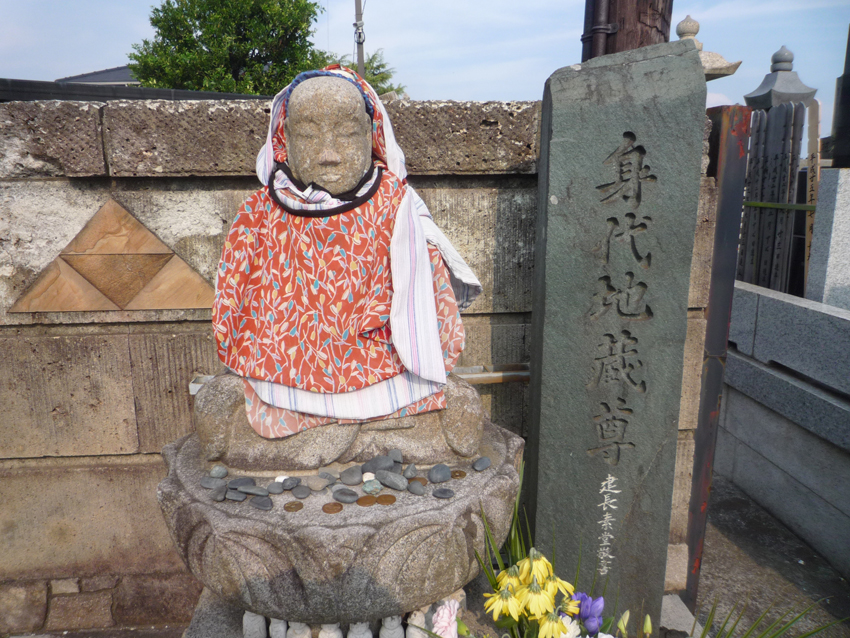 からす茶屋という所で、桶と線香と花をもらい、トコトコ細い路地へ、