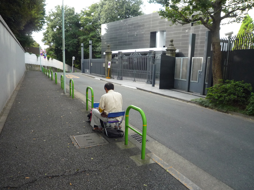 散歩途中の歩道で、ここのところ、ずっと座り込んでいる人がいる。