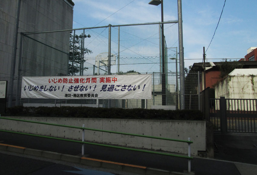 朝、散歩に出る。すぐそばの中学校を通過しようとしたら、目に飛び込んできたのが、この横幕。バナーとも言うのかな。