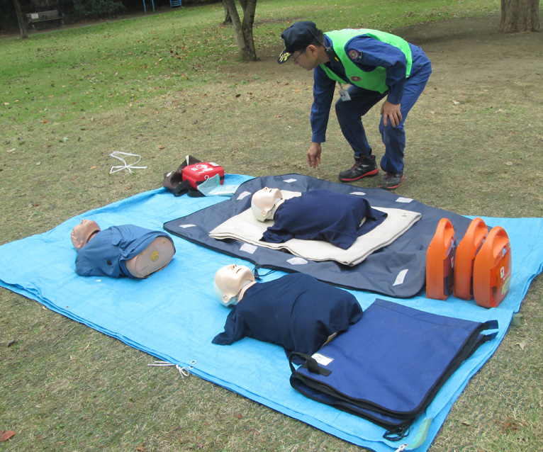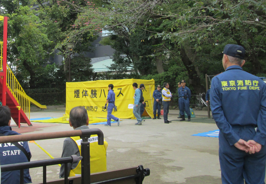 消防庁の人たちと地元消防団と思しき人たちが。