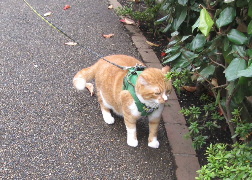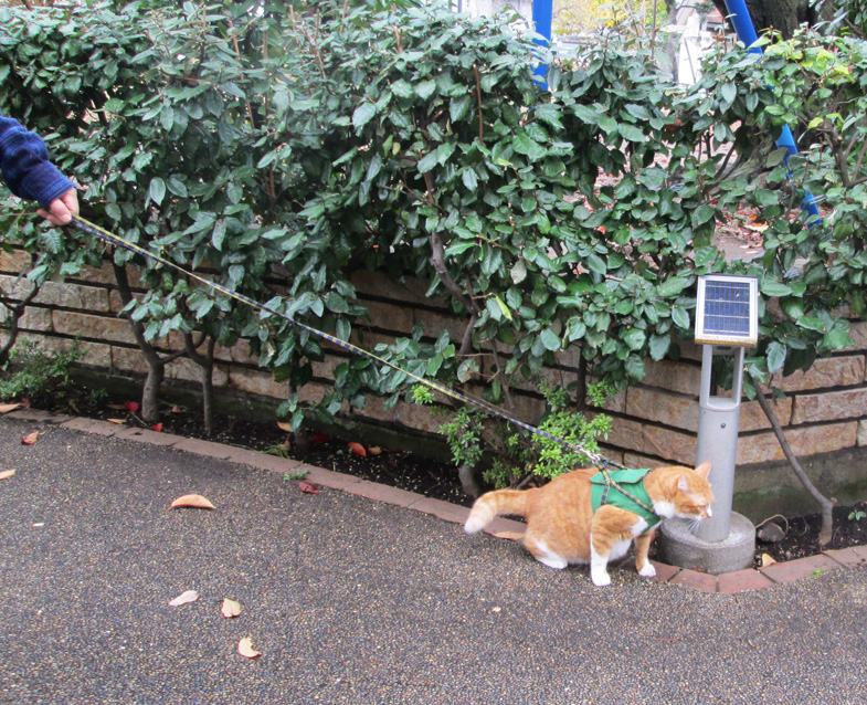 なんか悠然と歩くおじさんと小犬と思ったら、猫でした。