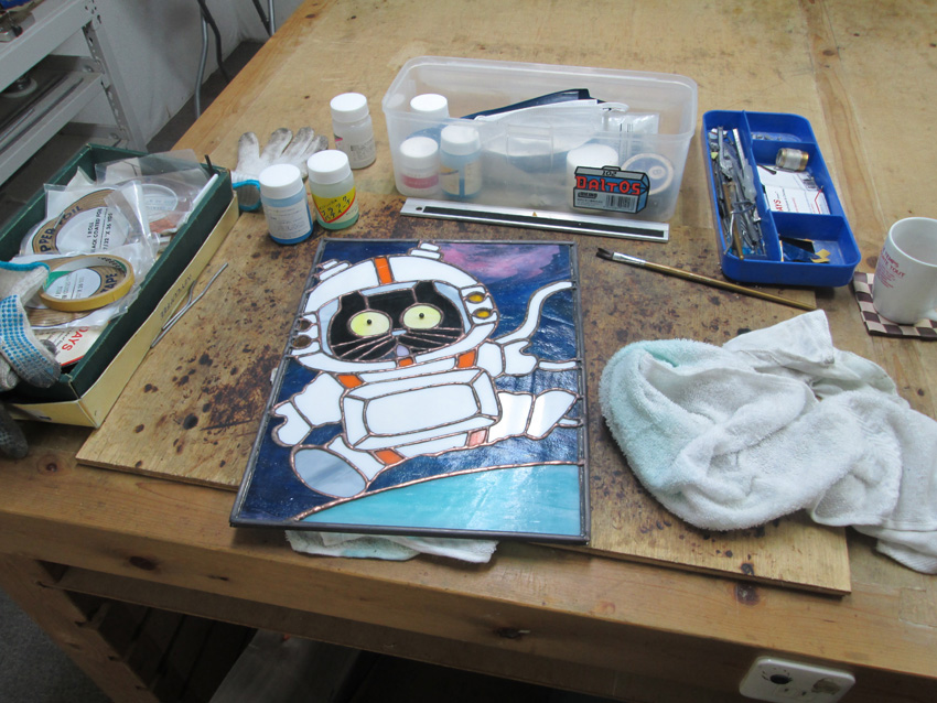 ステンドグラス完成するも、、