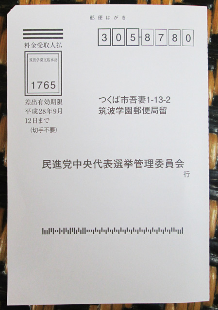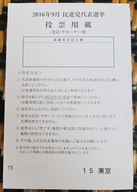 初めて見る”民進党”選挙用紙。