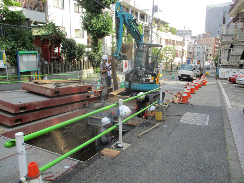家の前の坂ででここの所毎日土を掘ったりふたをしたり、まあ下水管取り替えの工事ですね。